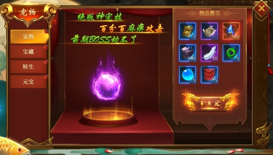 境界9阶目标 | 屠龙币 | 10000 | 元宝袋 | 30 | 玉佩碎片 | 10 |