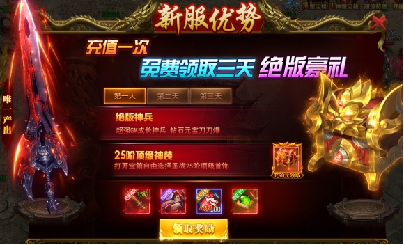 活动内容:开服前5天,每天开启一个冲榜活动,角色满足指定条件即可领取超多丰厚奖励